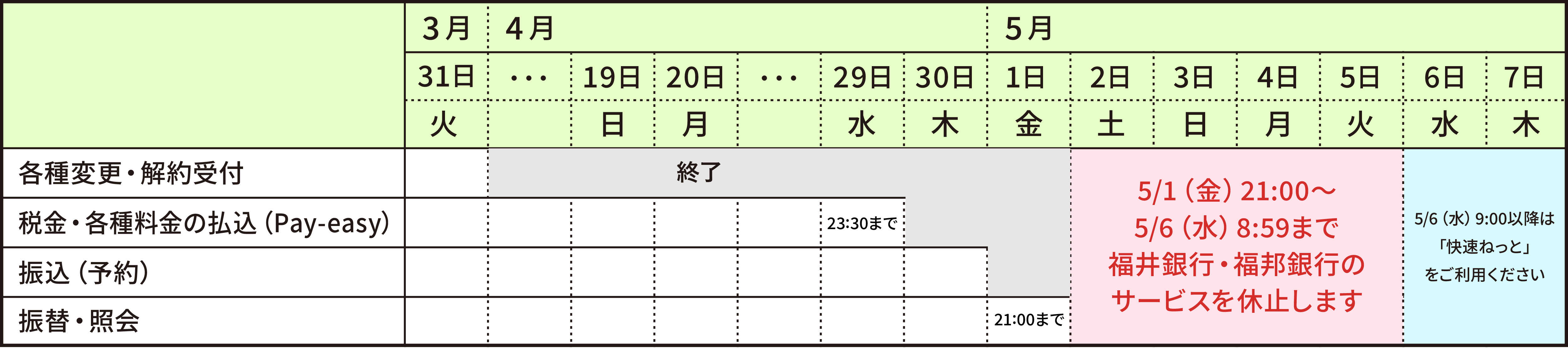 2026年5月6日(水)9:00からは福井銀行の各サービスをご利用いただけます。