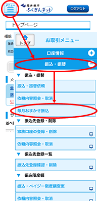 「毎月おまかせ振込の新規登録」の「新規登録」ボタンよりお手続きいただけます。