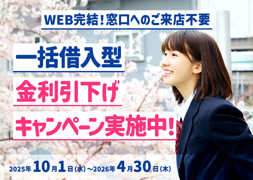 【お借入金額】 WEB完結型 10万円以上500万円以内(1万円単位) 店頭申込型 10万円以上1,000万円以内(1万円単位) 【お借入期間】最長20年