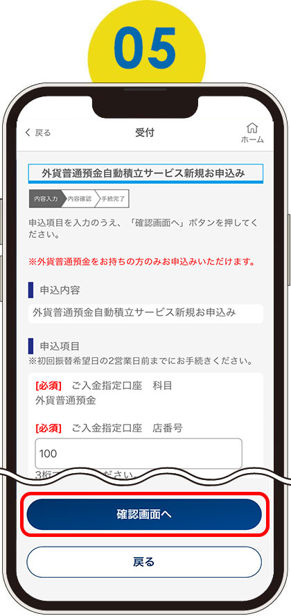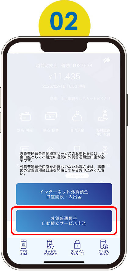 ※外貨普通預金口座が必要となります。お持ちでない方は、まず外貨普通預金の口座開設からお願いします。