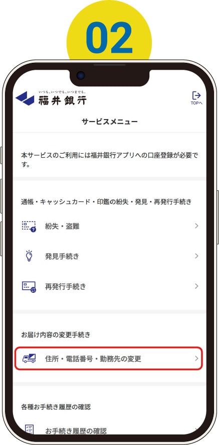 • 「住所・電話番号・勤務先の変更」をタップ