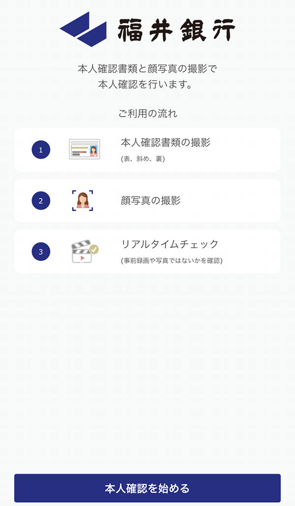 STEP3 【お願い・ご注意事項の確認、本人確認書類・顔写真の撮影、お客さま情報の登録 → お申込完了】